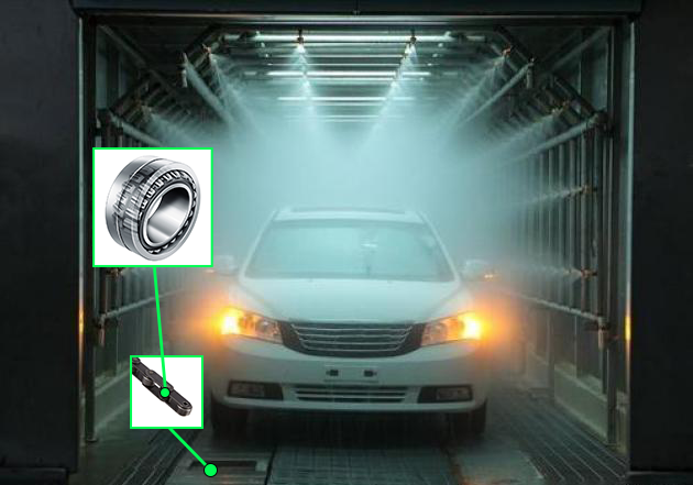汽車檢驗(yàn)過程中需要經(jīng)過多道檢驗(yàn)工序,其中的汽車噴淋試驗(yàn),需要考驗(yàn)汽車的防水能力,而使用軸承滾子鏈條作為運(yùn)輸鏈條,有以下的優(yōu)點(diǎn): 1.軸承滾子鏈條采用獨(dú)有的滾子內(nèi)置圓筒滾柱構(gòu)造,滾子的回轉(zhuǎn)抵抗小,減輕鏈條的張力和所需動(dòng)力,降低耗電量。還具有在低速場(chǎng)合抑制粘滑現(xiàn)象的特長(zhǎng)。 |