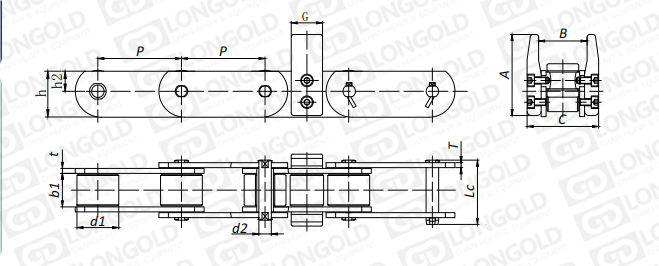 附件可配裝在每一個(gè)鏈節(jié)以上的鏈節(jié)間隔,如每偶數(shù)鏈節(jié)安裝,為了容易進(jìn)行保養(yǎng),安裝在外鏈節(jié)。