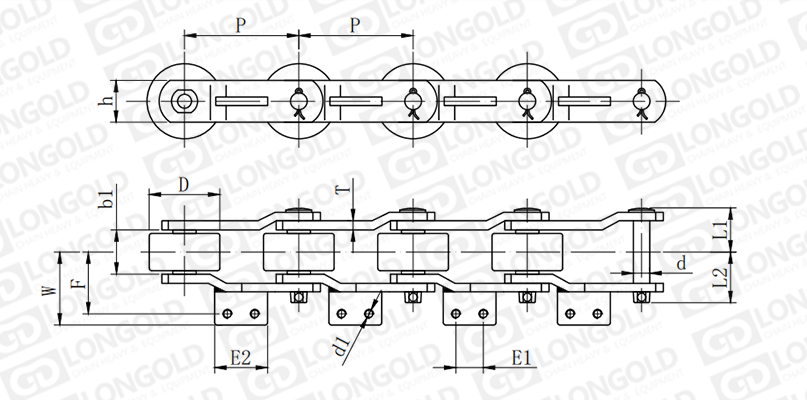 附件是為了將夾具安裝在鏈條上的零部件??筛鶕?jù)客戶要求設定安裝間隔。
