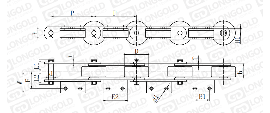 附件是為了將夾具安裝在鏈條上的零部件??筛鶕?jù)客戶要求設(shè)定安裝間隔。