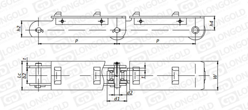 附件可配裝在每一個(gè)鏈節(jié)以上的鏈節(jié)間隔,如每偶數(shù)鏈節(jié)安裝,為了容易進(jìn)行保養(yǎng),安裝在外鏈節(jié)。
