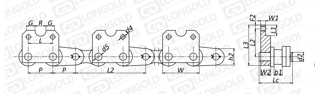 附件是為了將夾具安裝在鏈條上的零部件。可根據(jù)客戶要求設(shè)定安裝間隔。