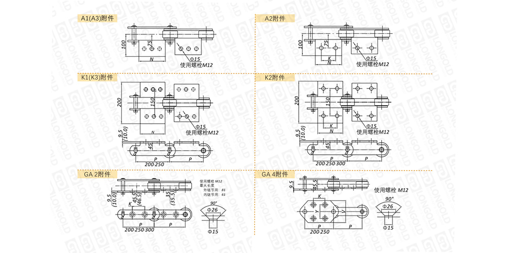 附件是為了將夾具安裝在鏈條上的零部件。可根據(jù)客戶要求設(shè)定安裝間隔。