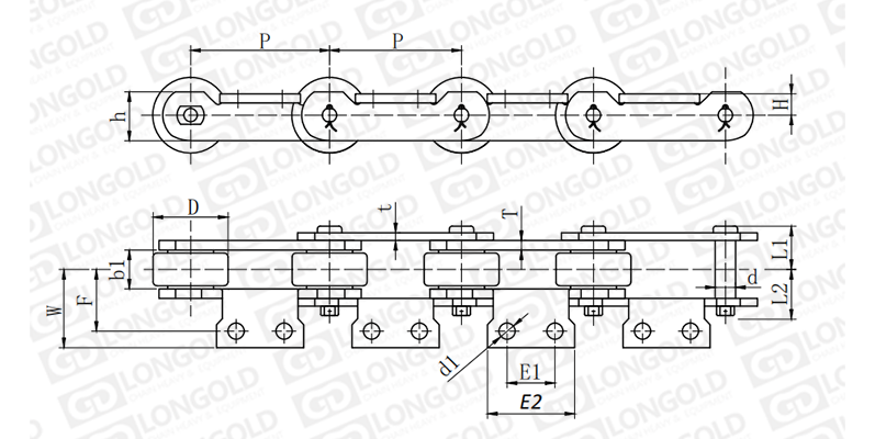 附件是為了將夾具安裝在鏈條上的零部件。可根據(jù)客戶要求設(shè)定安裝間隔。