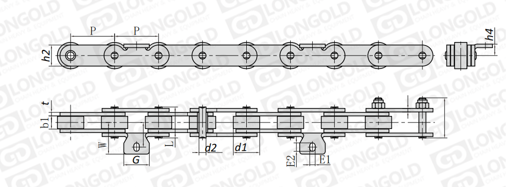 附件是為了將夾具安裝在鏈條上的零部件。可根據(jù)客戶要求設(shè)定安裝間隔。