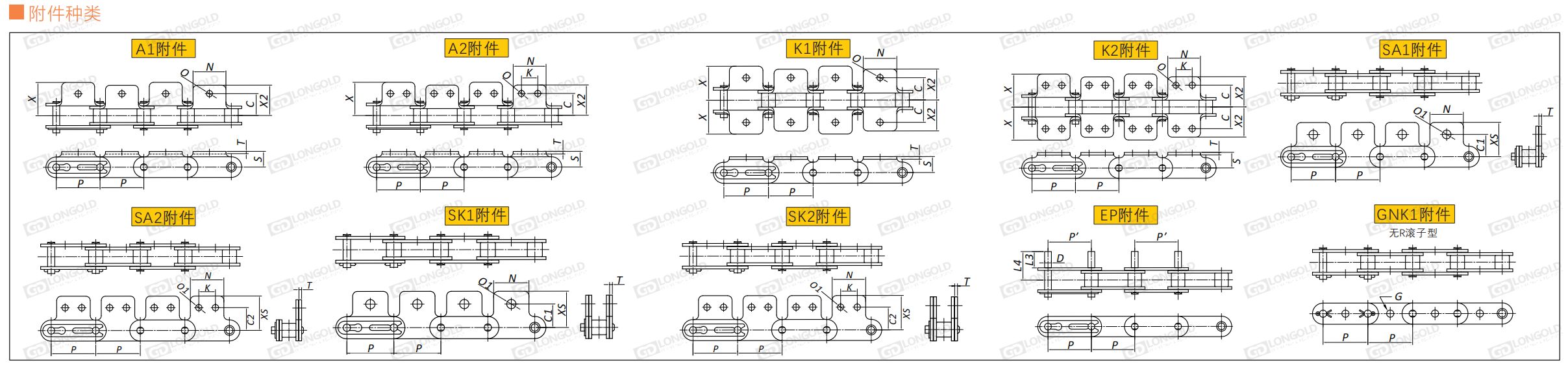 連接鏈節(jié)的銷軸形式:LDC2040-LDC2060為卡簧型,LDC2080以上為開口銷型。
