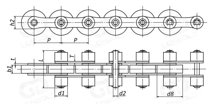 本體鏈條為雙節(jié)距傳動鏈條。