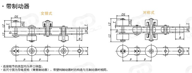 (2)鏈條本體的滾子類型:S=S滾子,R=R滾子,RP=塑料R滾子