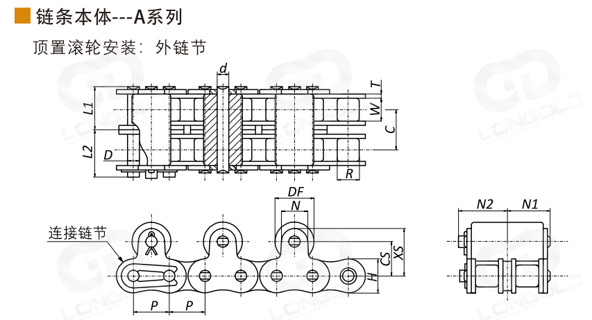 1. 各鏈節(jié)帶頂置滾子時(shí),DF尺寸將發(fā)生變化。