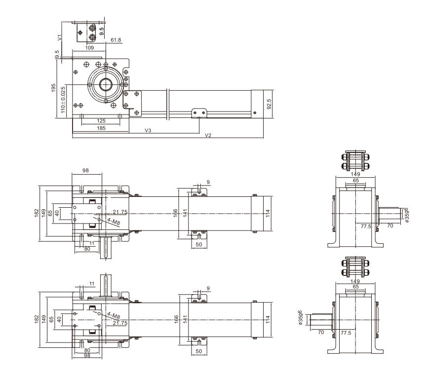 輸入軸方向有左出軸(L)型、右出軸(R)型以及雙出軸(L+R)型。