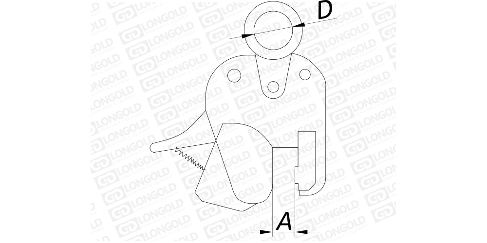 上圖為豎吊鋼板起重鉗的結(jié)構(gòu)圖。