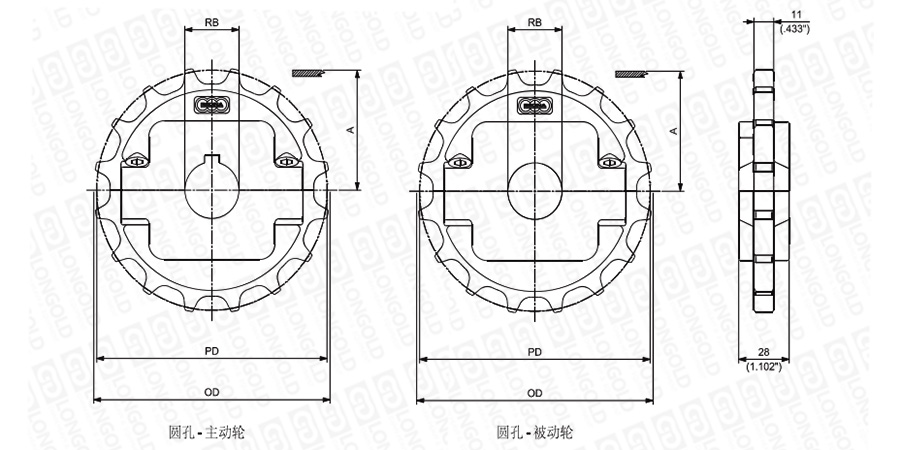 1.圓孔鏈輪表示直徑,方孔鏈輪表示邊長(zhǎng)。