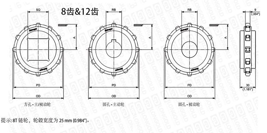 注:圓孔鏈輪表示直徑,方孔鏈輪表示邊長。