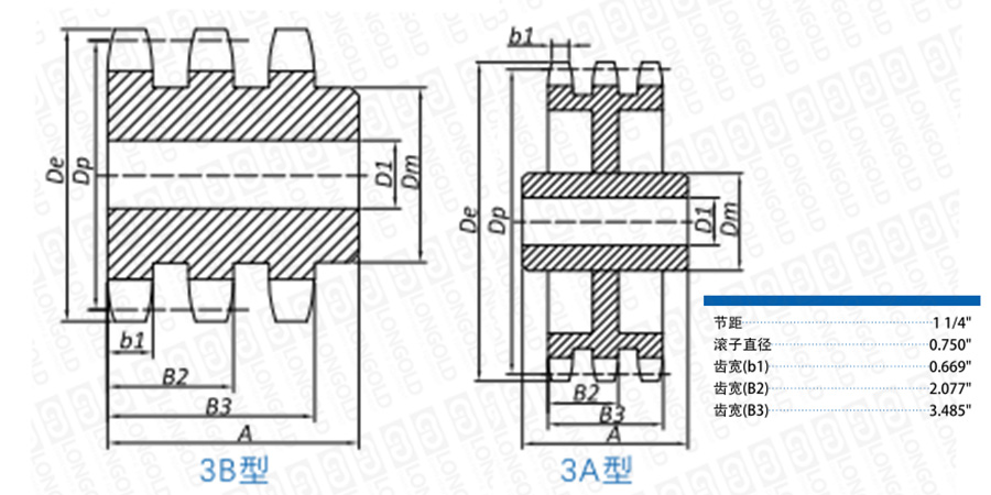 ■3B型鏈輪尺寸表
