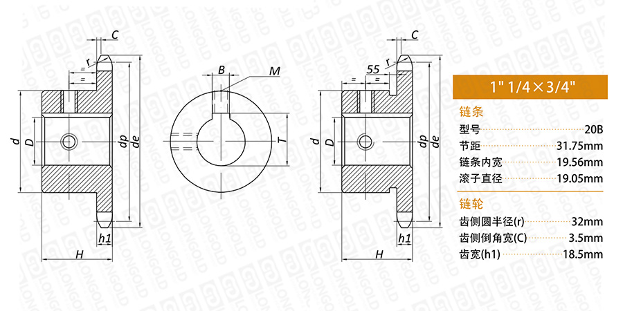 上圖為20B-1 成品孔鏈輪的結構圖。