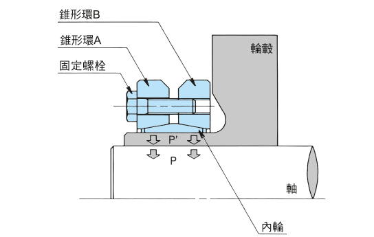 結(jié)構(gòu)簡(jiǎn)單,只有內(nèi)環(huán)和2個(gè)錐形環(huán)以及固定螺栓組成。