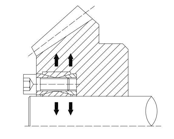 拆卸脹緊聯(lián)結(jié)套時(shí),先將全部螺釘松開并取下,然后將拆卸螺釘擰入相應(yīng)的拆卸螺紋孔內(nèi)(裝有鍍黃鋅螺釘?shù)穆菁y孔),