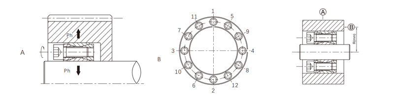 按圖B所示順序,依次擰緊螺釘,要分3-4次逐次擰緊螺釘直至達(dá)到螺釘擰緊力矩,
