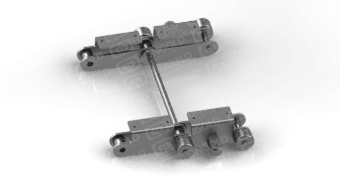 帶側(cè)置滾輪的汽車汽車生產(chǎn)線鏈條,側(cè)置滾輪能減少鏈條運(yùn)動(dòng)時(shí)的摩擦阻力,使鏈條能夠更加順暢地在軌道上運(yùn)行。