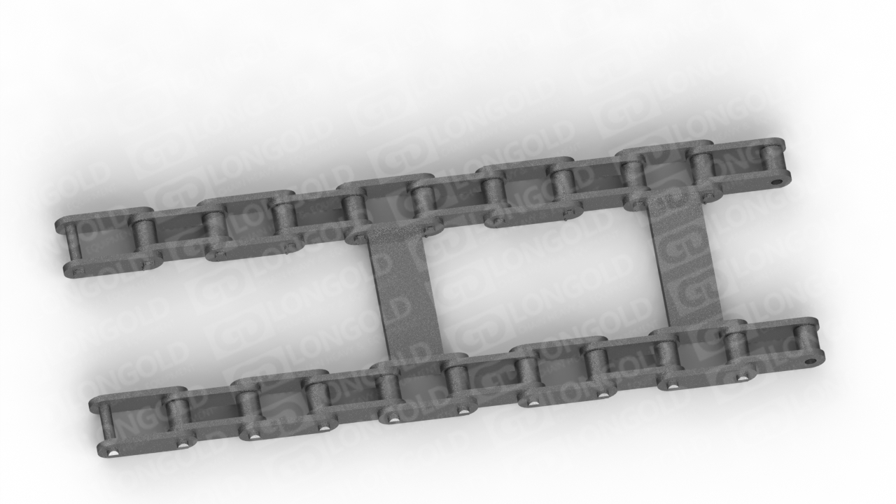 雙排鋪路機鏈條設(shè)計用于雙排鋪路機,它們在兩鏈條之間裝配刮板,以提高物料的輸送效率和鏈條的耐用性。