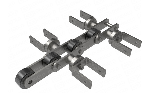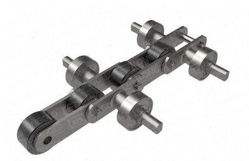 專門用于手套大型先進流水線生產(chǎn)的輸送鏈條,兩側(cè)附件的軸延長,適合更長尺寸手套的生產(chǎn)。