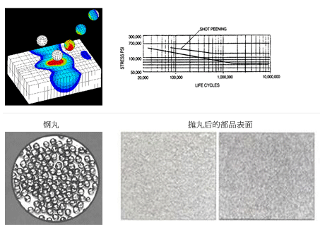 高速噴射的鋼球丸可以除去物體表面的凹凸部位,提高耐磨損和抗疲勞度。