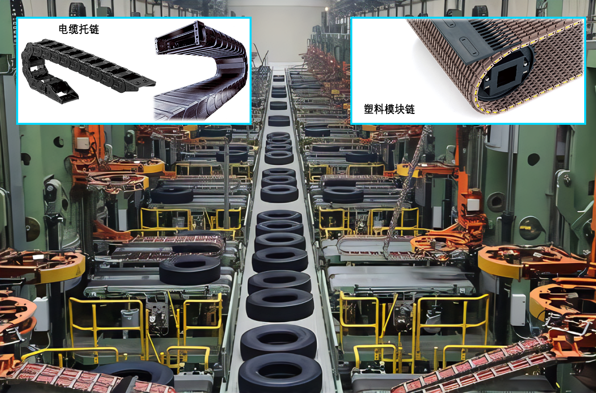 輪胎在加工完畢之后,還需要進(jìn)行檢查和包裝,這時候可以使用鏈條構(gòu)建的輸送系統(tǒng),方便輪胎的精確包裝。 |