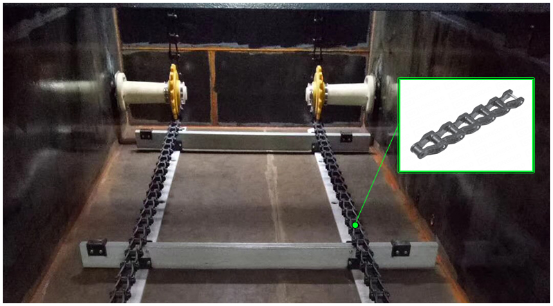 水處理用輸送鏈和污水處理用輸送鏈主要是用于污水流淌較為緩慢的區(qū)域,通過鏈條的運轉帶動污水的流動,同時將沉積下來的污泥從底部帶動到污泥清除區(qū)域,保證污水處理通道不會因污泥沉積而堵塞。 |