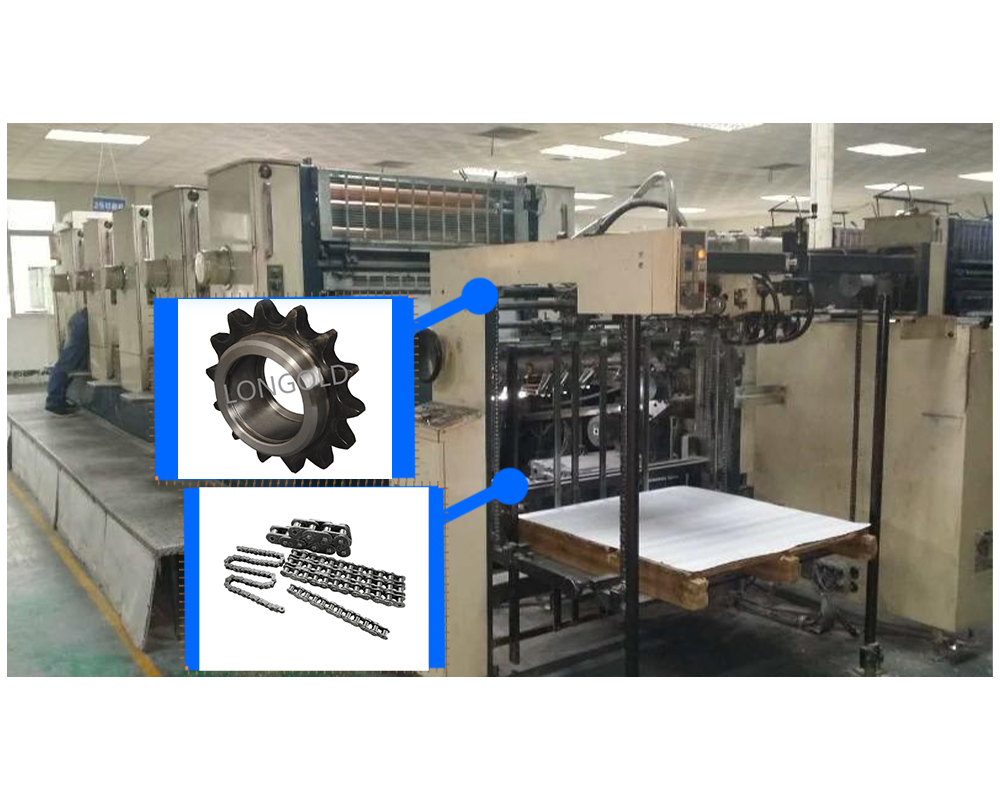 印刷設(shè)備通常需要較大的動力來驅(qū)動各個部件的運動,隆德的傳動鏈和鏈輪可以將動力從電機等動力源傳遞到印刷設(shè)備的各個部位,確保設(shè)備的正常運行。圖中為滾子鏈和鏈輪組合來為印刷設(shè)備傳動動力。 |