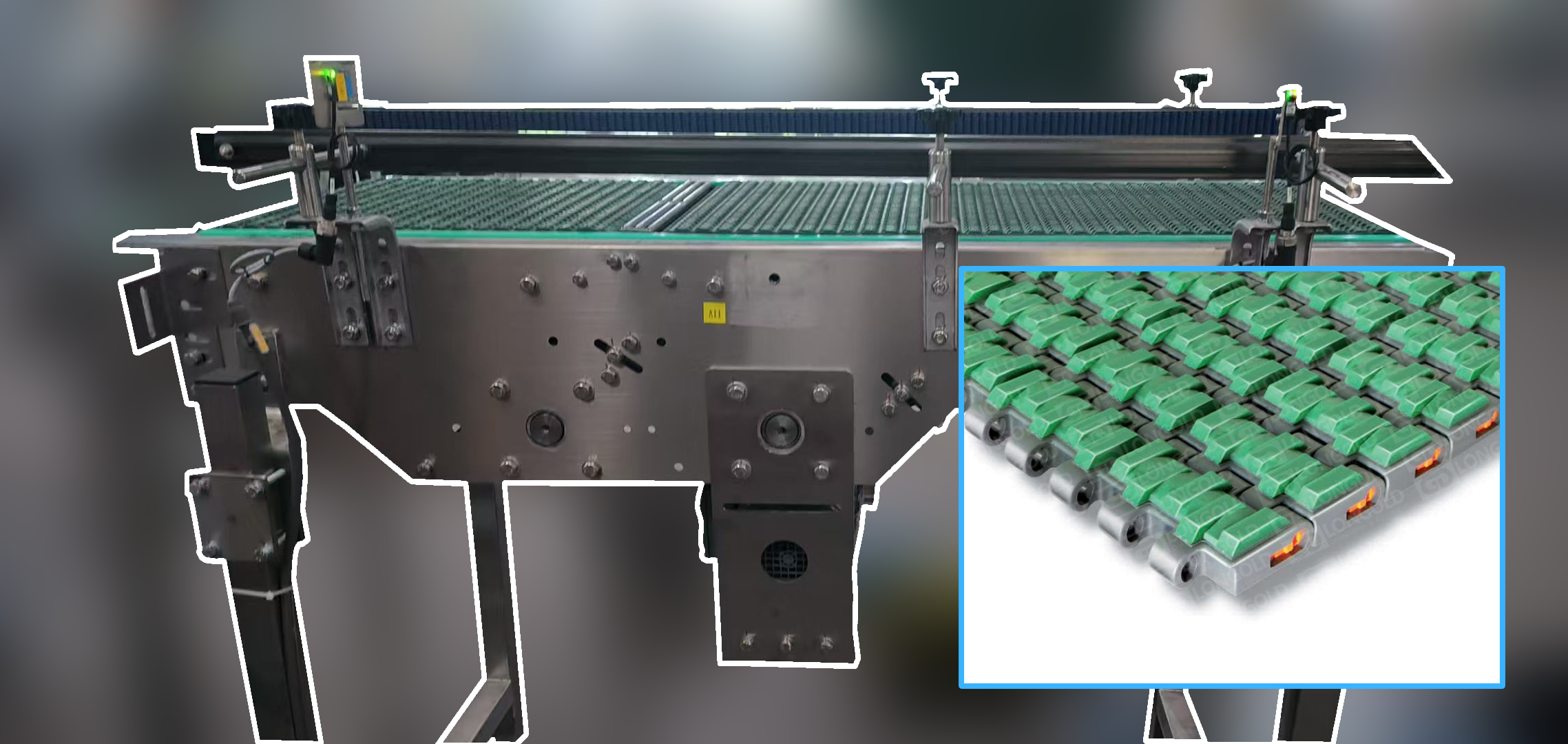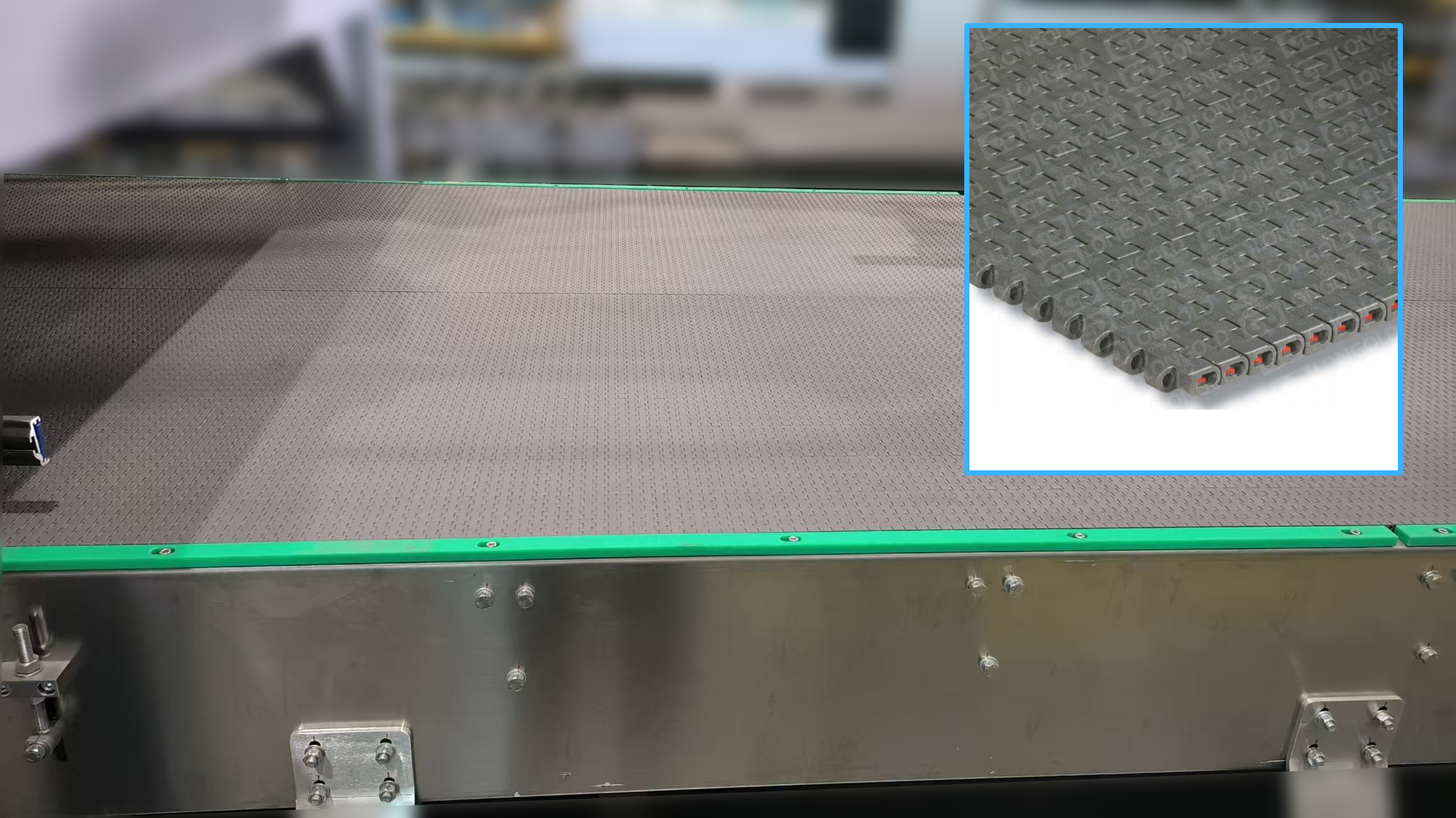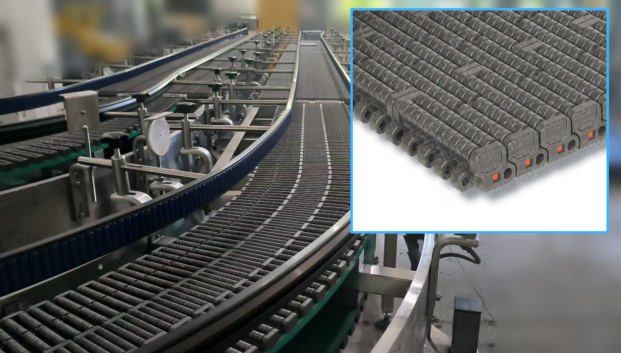 鉸鏈部分經(jīng)過加強,在較大的負載下依舊能夠安全使用,同時,圓弧狀邊緣采用無間隙的鉸鏈設(shè)計,在產(chǎn)品輸送或邊緣過渡時,可以更平穩(wěn)的輸送產(chǎn)品。