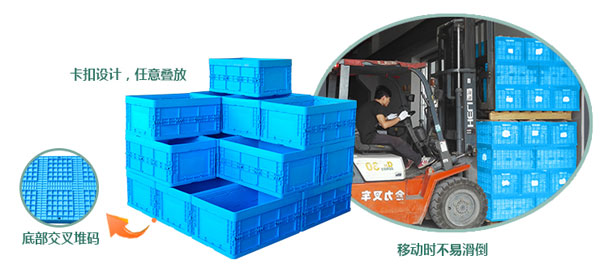 5、防滑防倒:箱子底部交叉堆碼,卡扣設(shè)計(jì),任意疊放,防止箱子在移動(dòng)時(shí)因堆高而易滑倒