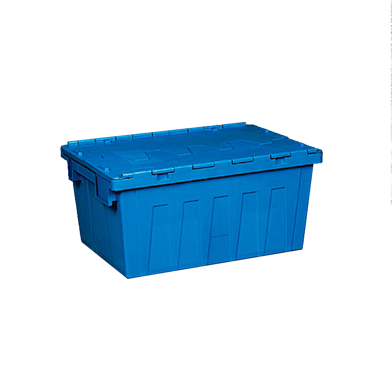 1. 物流箱為可插式、帶連體外翻箱蓋;把手搬運舒適,空箱套入時,把手在外。