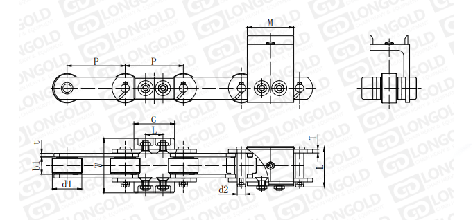 附件是為了將夾具安裝在鏈條上的零部件??筛鶕?jù)客戶要求設(shè)定安裝間隔。