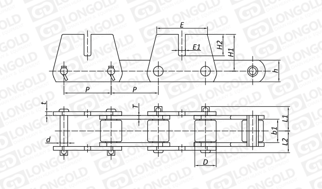 附件是為了將夾具安裝在鏈條上的零部件??筛鶕?jù)客戶要求設(shè)定安裝間隔。