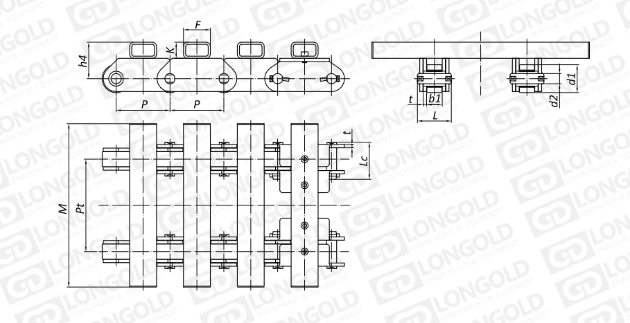 附件是為了將夾具安裝在鏈條上的零部件。可根據(jù)客戶要求設(shè)定安裝間隔。