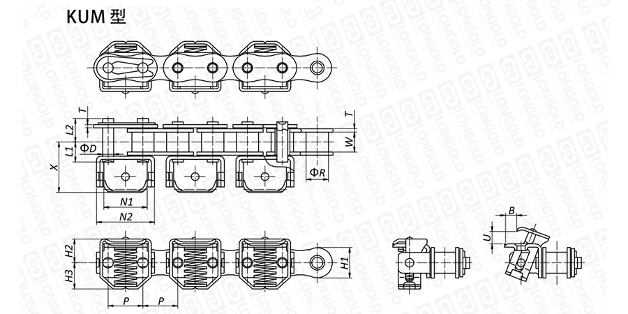 上圖為不銹鋼夾膜鏈KUM型的結構圖。