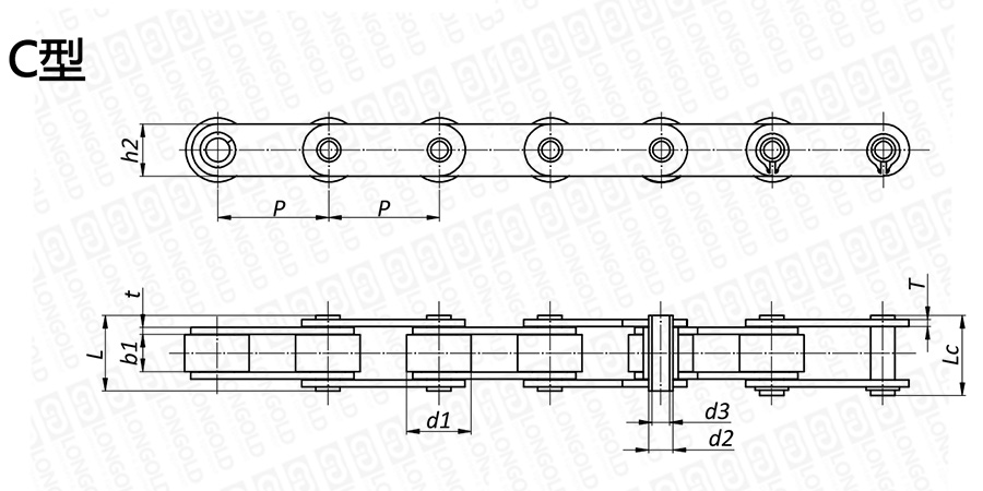 上圖為不銹鋼空心銷軸鏈C型的結(jié)構(gòu)圖。
