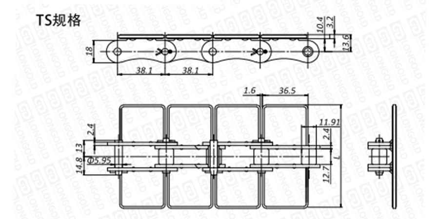 上圖為不不銹鋼頂板鏈TS規(guī)格的結(jié)構(gòu)圖。