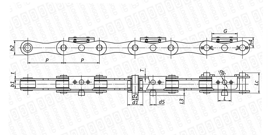 附件可配裝在每一個鏈節(jié)以上的鏈節(jié)間隔,如每偶數(shù)鏈節(jié)安裝,為了容易進行保養(yǎng),安裝在外鏈節(jié)。