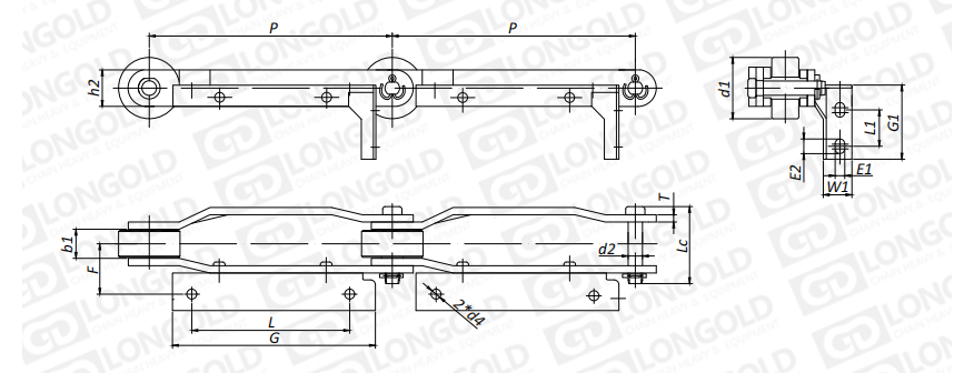 附件是為了將夾具安裝在鏈條上的零部件。可根據(jù)客戶要求設(shè)定安裝間隔。