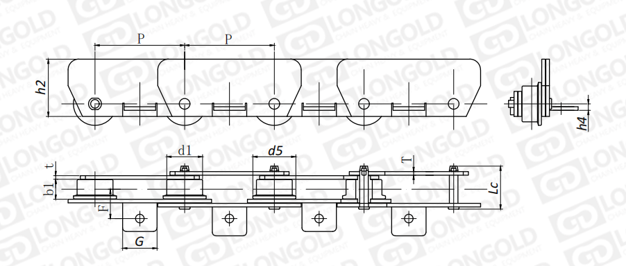 附件是為了將夾具安裝在鏈條上的零部件。可根據(jù)客戶要求設(shè)定安裝間隔。