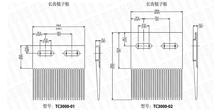 在選擇梳子板時,需要考慮安裝尺寸,如有需要,請咨詢隆德技術(shù)人員。