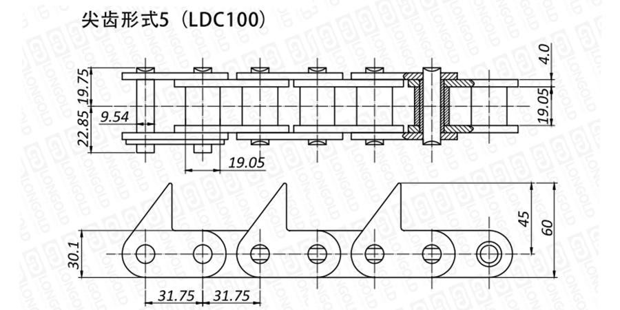 上圖為不銹鋼尖齒鏈V的結構圖。