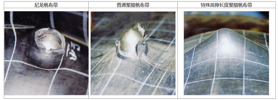 破斷時的伸長為尼龍帆布的1.8倍,而正常使用張力時的伸長低于普通聚酯帆布。