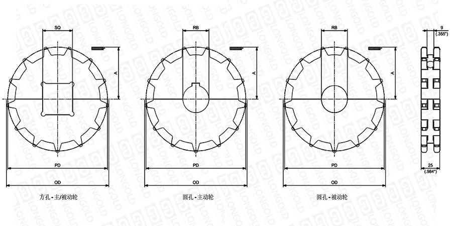 1.圓孔鏈輪表示直徑,方孔鏈輪表示邊長。