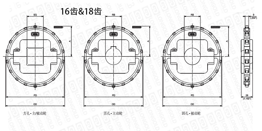 1.圓孔鏈輪表示直徑,方孔鏈輪表示邊長。