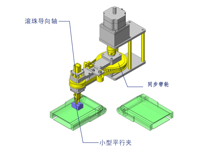 ?的:通過同步帶輪和同步帶的傳動(dòng)動(dòng)力,將傳送帶上的工件旋轉(zhuǎn)90°并轉(zhuǎn)移到下一道?序。此時(shí),夾緊機(jī)構(gòu)進(jìn)?180°自轉(zhuǎn),轉(zhuǎn)移時(shí)不相對(duì)于輸送方向同時(shí)改變工件方向。