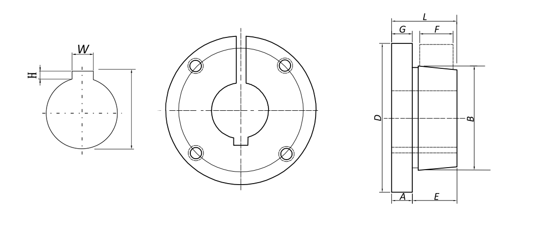 拆卸:拆卸螺栓,將其放入產(chǎn)品中心的螺紋孔中。當(dāng)它們被拉起時(shí),它們將充當(dāng)錐套法蘭上的千斤頂螺絲,以釋放錐套和輪轂之間的抓緊力。