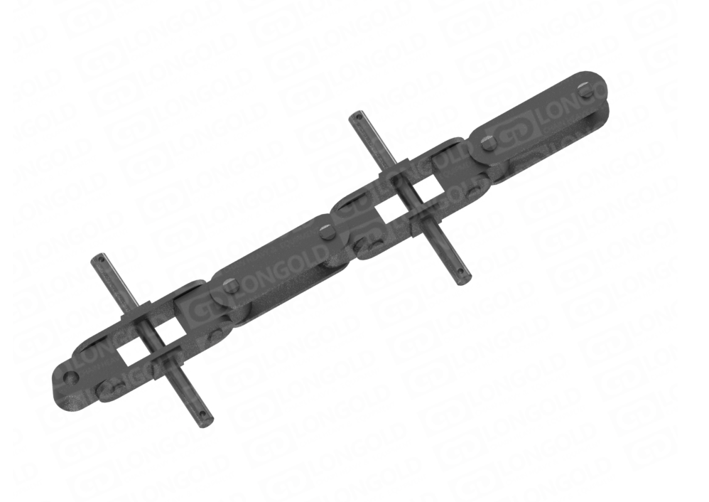 雙鉸接輸送鏈條設(shè)計(jì)用于能夠在空間范圍內(nèi)沿彎曲封閉軌道平穩(wěn)運(yùn)行的輸送系統(tǒng),常見于輕型封閉軌懸掛輸送機(jī)。它的結(jié)構(gòu)允許在多個(gè)方向上靈活移動,適用于復(fù)雜的輸送路線。