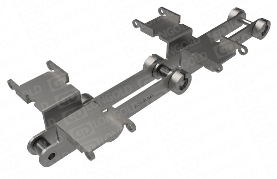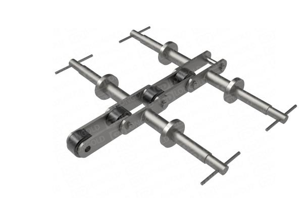 專門用于手套大型先進流水線生產(chǎn)的輸送鏈條,兩側(cè)附件的軸延長,適合更長尺寸手套的生產(chǎn)。